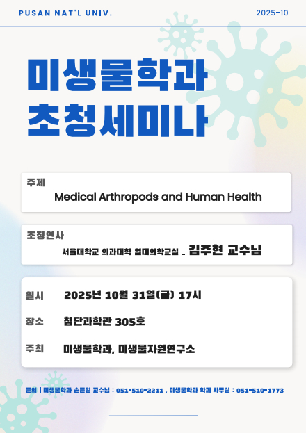 미생물학과에서 아래와 같이 초청세미나를 개최하오니 관심 있는 분들의 많은 참석 부탁 드립니다.