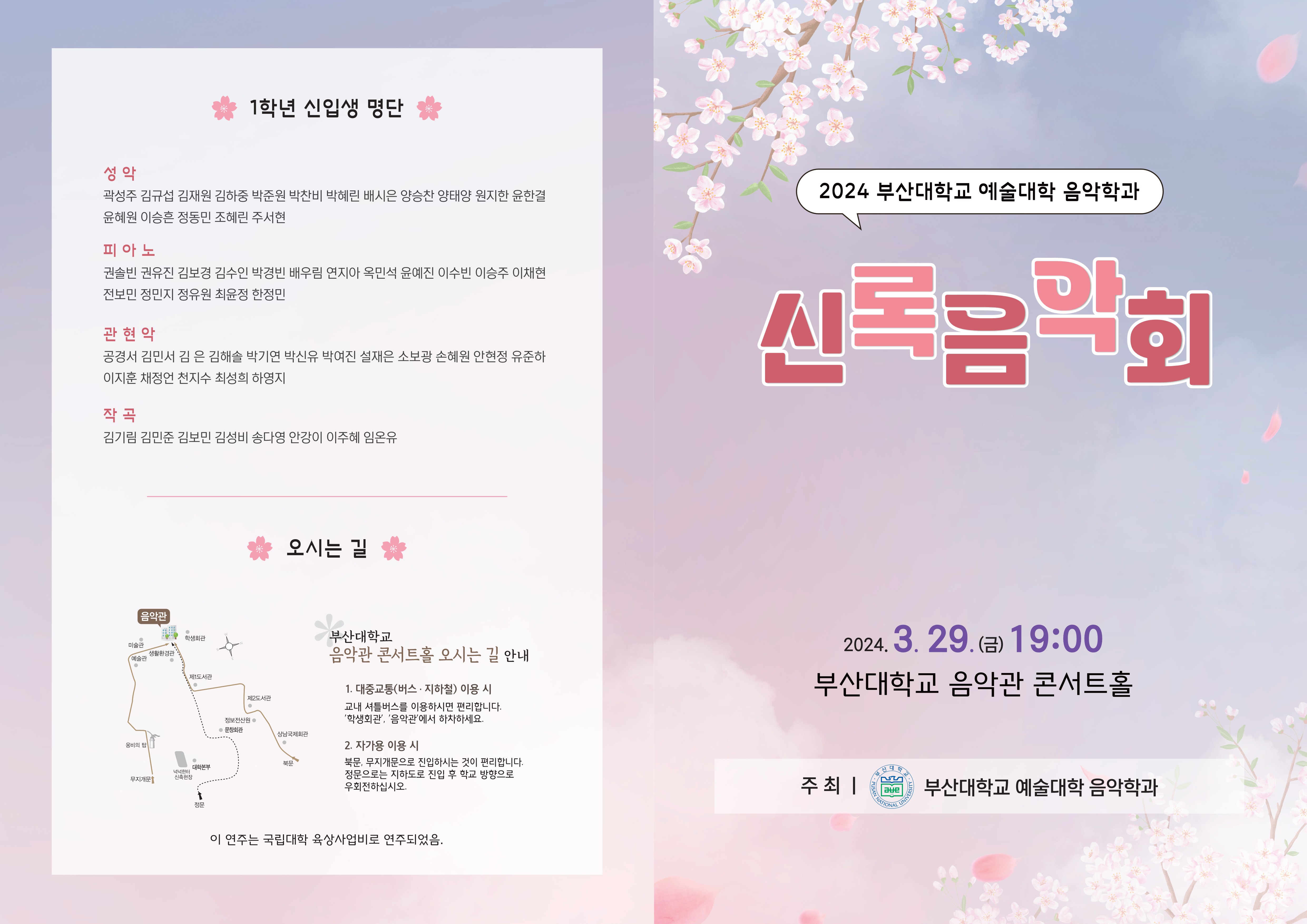 [공연안내] 2024 신록음악회 공연 안내(03월29일 금요일 19시 음악관 콘서트홀)