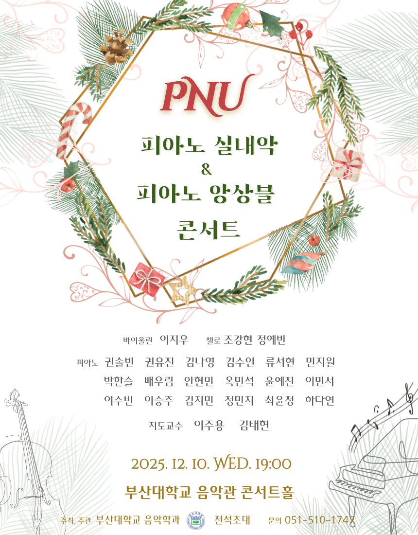 [공연안내] PNU 피아노 실내악 & 피아노 앙상블 콘서트(12월10일 19시 음악관 콘서트홀)