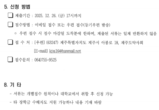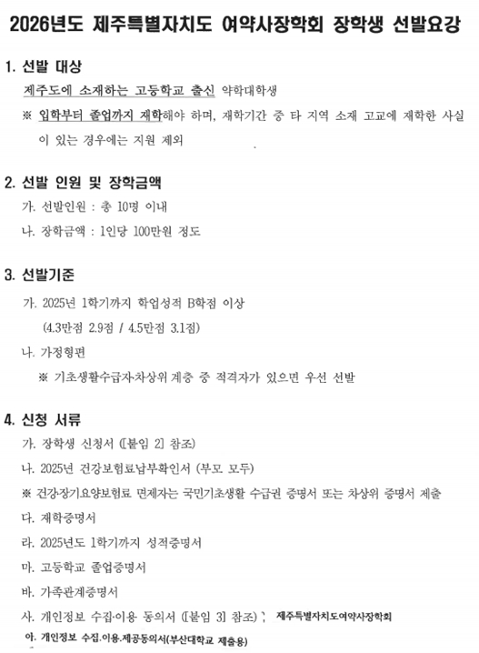 2026년도 제주특별자치도 여약사장학생 선발요강 안내