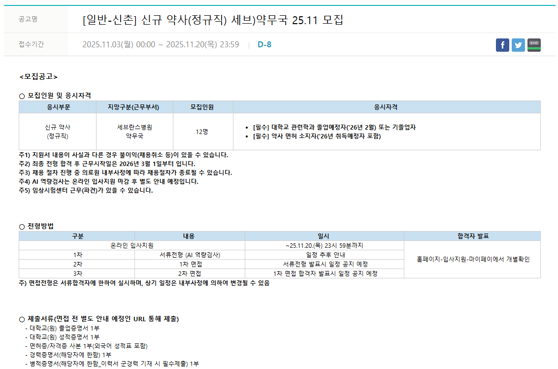 채용 공고 링크 : https://yuhs.recruiter.co.kr/app/jobnotice/view?systemKindCode=MRS2&jobnoticeSn=232586