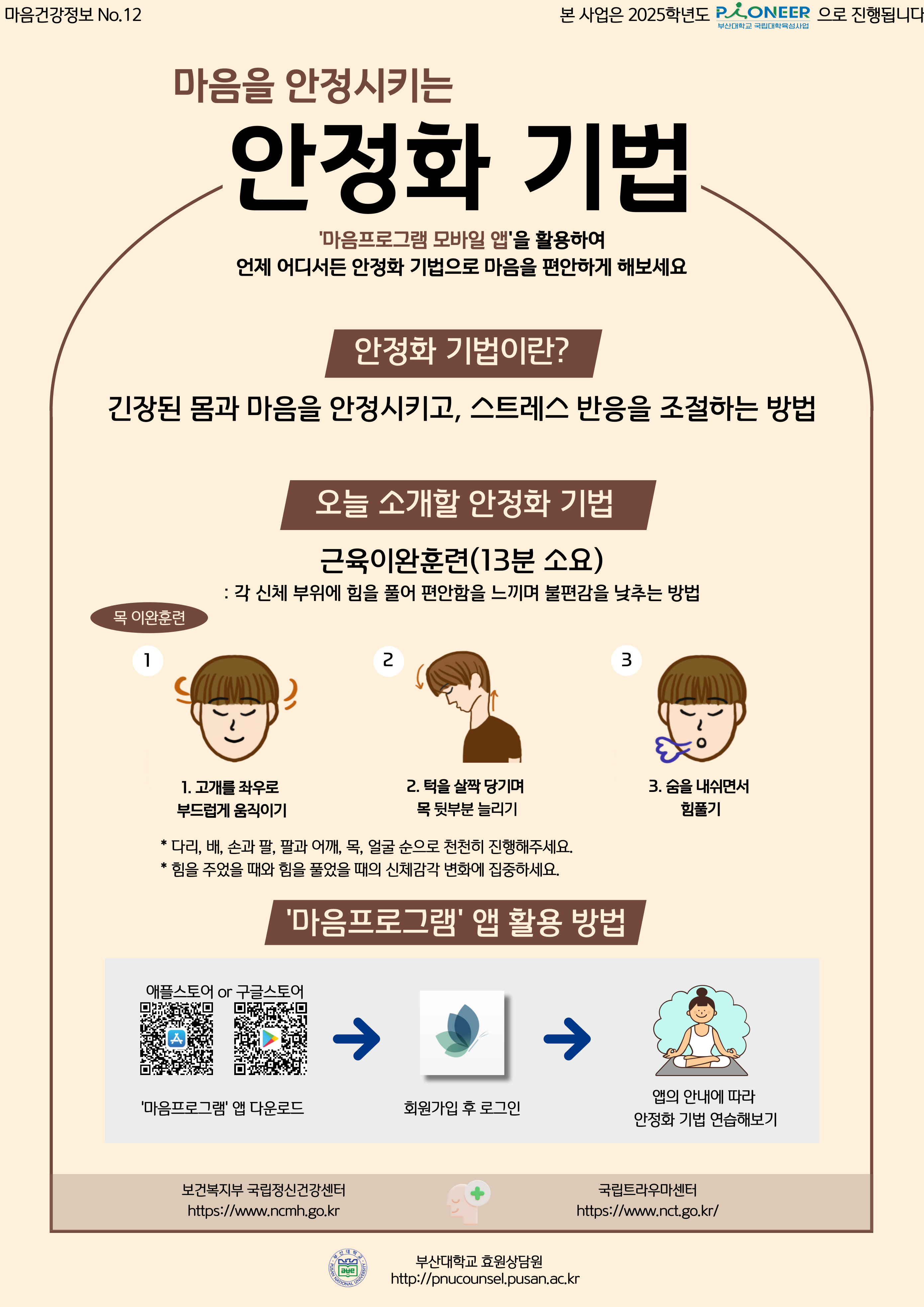 2025년 [마음건강정보안내 No.12] 안정화 기법 안내(근육이완훈련)