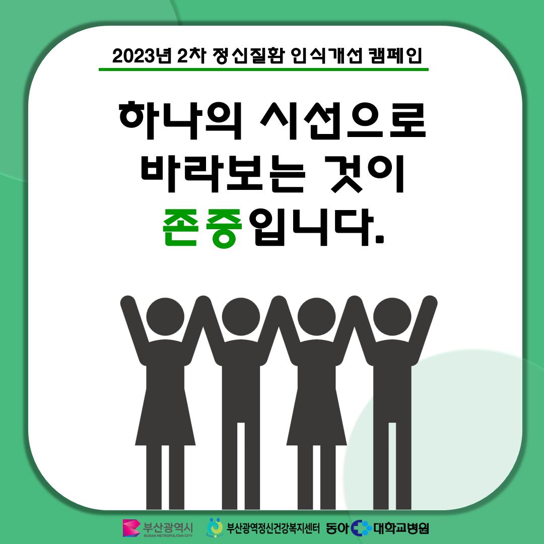 # 정신질환 인식개선 캠페인 ‘하나의 시선으로 바라보는 것이 존중입니다.’ #