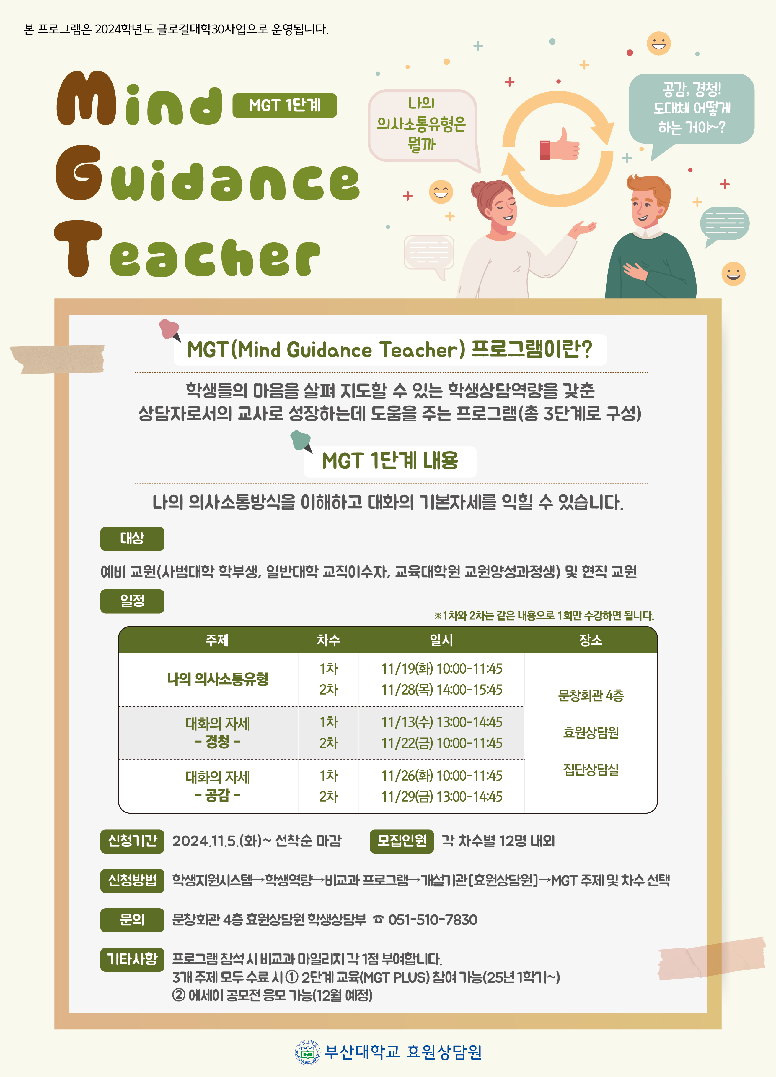 [효원상담원] MGT(Mind Guidance Teacher) 프로그램 신청 안내