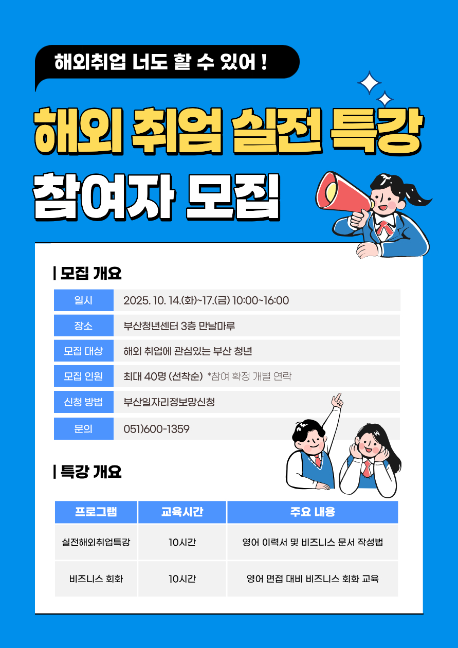 모집대상: 부산지역 해외취업에 관심 있는 청년 (40명)