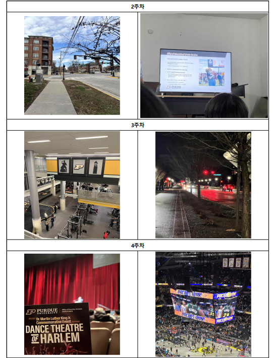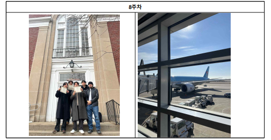 활동 내용 | 시카고 ORD 공항에 도착했을 때, 사람들로 매우 북적였습니다. 여행객들이 입국 심사를 기다 리며 줄을 서 있었습니다. K-SW 인원 30명이 한꺼번에 움직여야 했기 때문에, 줄의 맨 끝 에 자리잡게 되었습니다. 공항 내에서의 대기 시간은 2시간이 넘었습니다. 그 후, 조교님과 교수님의 안내로 버스를 타고 숙소인 Lark로 이동했습니다. 첫 주는 정리와 시차 적응에 할애했습니다. 다음날 아침, 출근 첫날을 맞아 일찍 출발해 카페를 방문했습니다. 메뉴판에 적힌 가격이 세 전 금액임을 알게 되었고, 세금을 더하니 물가에 대한 감이 생겼습니다. 출근을 시작하면 서 본격적으로 영어 사용에 돌입했는데, 한 시간 전까지만 해도 친구들끼리 한국어를 사용 하던 것에서 영어를 쓰게 되어 미국에 와 있다는 실감을 더하게 했습니다. 차주에는 비자 발급과 프로젝트 관련 오리엔테이션을 진행했습니다. 7주밖에 되지 않는 기간 동안 서로의 연구 관심사와 원하는 연구 주제에 대해 알아가는 시간을 가졌습니다. 영어로 자기소개를 하면서 서로 조금씩 친해지기 시작했습니다. 자연스럽게 팀을 이루게 되었고, 미국에서 현재 활발하게 연구되고 있는 분야인 LoRaWAN을 연구 주제로 선택했습니다. 팀이 구성된 후 첫 주는 LoRaWAN에 대해 더 잘 알아가기 위해 관련 연구를 탐색하는 데에 집중했습니다. 실험을 어떻게 구성할지, 논문은 어떻게 작성할지에 대해 논의했습니다. 현 재는 실험 진행 중에 있으며, 이론적 지식을 실제 적용해보는 중입니다. |
