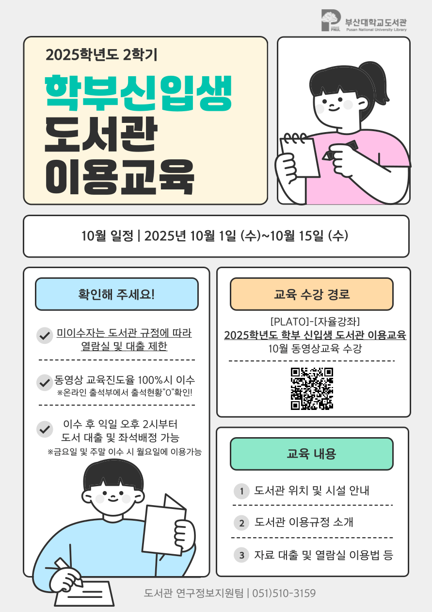[학부 신입생] 2025학년도 학부 신입생 도서관 이용교육 추가 실시(10월) 안내