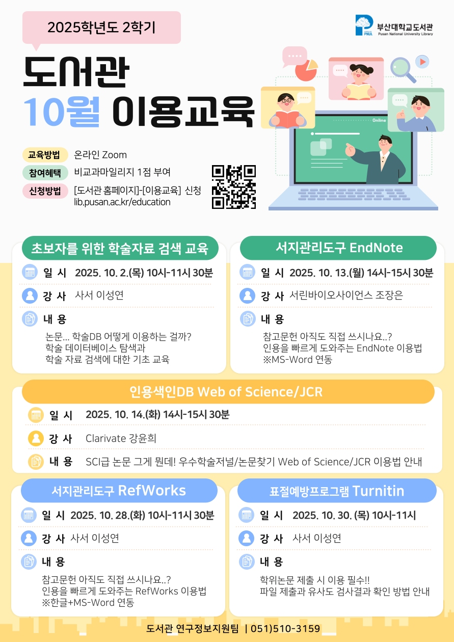 [학부 & 대학원] 2025학년도 10월 도서관 이용교육 일정 안내