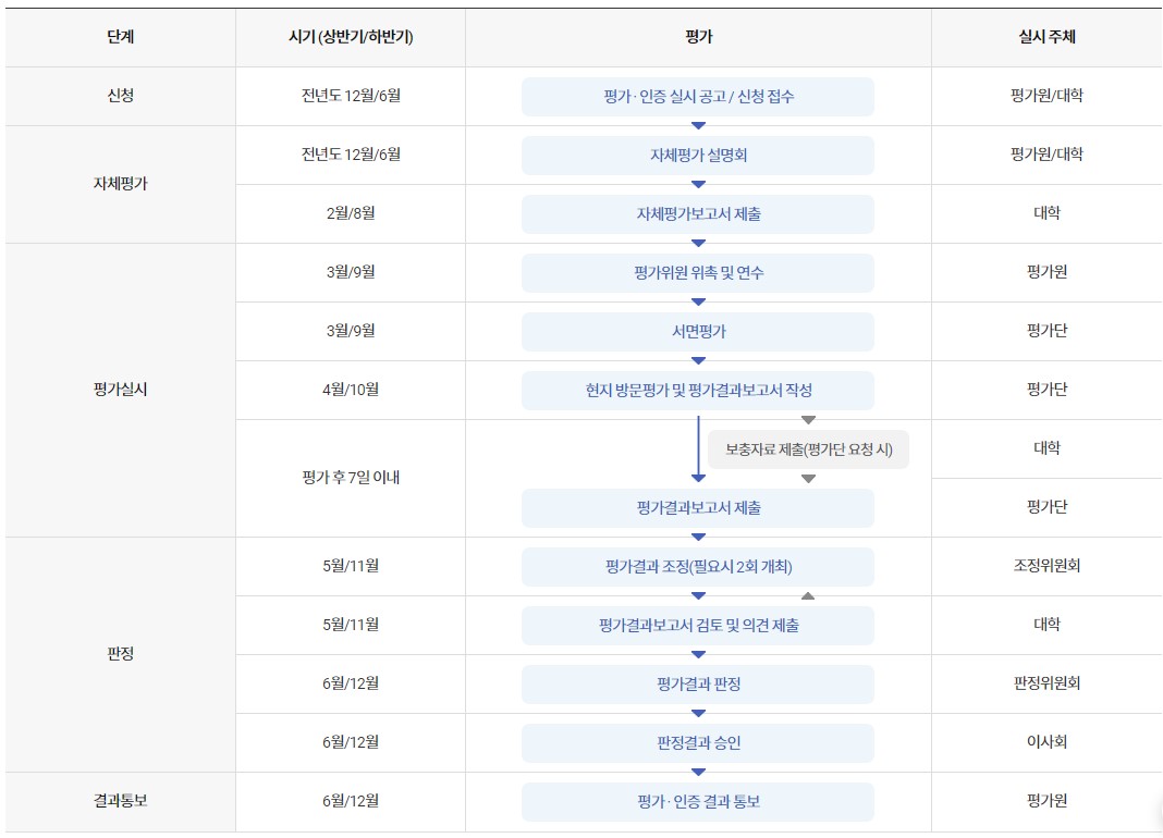 평가는 평가항목의 충족여부로 판단하며, 평가항목별, 평가요소별 인증기준의 충족여부에 따라 '충족', '보완', '미충족'으로 구분된다.