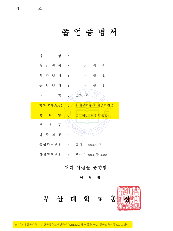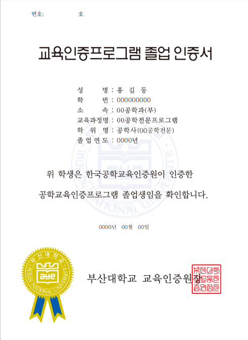 fnctId=bbs,fnctNo=11749 RSS 2.0 9 건 게시물 검색 제목 작성자 게시글 리스트 자격증, 어학, 봉사 등 경력관리 활동은 어떻게 등록하나요? 학생역량지원시스템( https://my.pusan.ac.kr ) → [비교과 활동] → [경력관리]에서 본인의 경력 신청내역 조회 및 경력관리를 신청할 수 있습니다. - 자격증 - 어학 - 봉사활동 - 수상실적 - 연수실적 - 동아리 활동 - 연구논문 - 기타 - 경력 신청내역 공학교육인증 졸업요건은 무엇인가요? 공학교육인증 졸업요건은 교과영역과 비교과영역으로 나누어 평가하며, 모두 만족하여야 인증졸업이 가능합니다. 가. 교과영역: 전문교양 9학점, MSC 30학점, 전공 54학점(설계 12학점 포함) 이상을 이수하여야하며, 선후수 이수체계를 반드시 준수하여야 함. 나. 비교과영역: 외국어능력 및 프로그램별 지정 요건(학생포트폴리오, 졸업과제, Exit Interview 등) 학생 포트폴리오 관리는 어떻게 하나요? 학생 포트폴리오는 입학에서부터 졸업까지 대학과정에서의 교과 교육활동과 교과 외 교육활동을 통하여 자신이 성취한 교육적 성과, 지식, 능력, 경험 등에 대한 자료를 모아 철하는 것으로, 매학기가 끝난 후 또는 수시로 자신의 활동들을 관리하는 것이 좋습니다. 선후수이수체계를 지키지 않으면 공학교육인증 졸업이 불가능한가요? 선후수이수체계란 공학교육인증프로그램에서 교육목표와 학습성과를 달성하기 위하여 교과목 간의 선수, 후수 관계를 체계적으로 이수하도록 정해 놓은 것으로 이를 지키지 않으면 공학교육인증 졸업이 불가능하니 반드시 자신의 이전학기 수강내역을 확인하여 이수체계에 따라 수강하여야 합니다. 만약, 이를 지키지 못했다면 학과로 문의하여 조교선생님과 상담하세요. 강의평가를 했는데, 성적확인이 되지 않아요. 공학교육인증 이수자의 경우, 학기 종료 후 두 가지의 강의평가(일반유형, 교육인증유형)를 실시하게 되며 강의평가를 실시한 학생은 해당학기의 성적을 확인할 수 있습니다. 만약, 두 가지의 강의평가를 모두 실시하였음에도 성적확인이 되지 않는다면 학기 중 지도교수와의 면담에 응하지 않았거나, 면담에 응하였으나 지도교수가 전산으로 면담내용을 입력하지 않은 경우이니 지도교수 및 학과로 문의하셔야 합니다. 나의 인증정보들은 어디서 볼 수 있나요? 학생역량지원시스템( https://my.pusan.ac.kr ) → [교과활동] → [성취도분석표]에서 본인의 인증관련 정보를 조회할 수 있습니다. 전문교양 수강신청은 어떻게 해야 하나요? 인증원에서는 매 학기 전문교양 교과목 공학교육인증 분반을 지정하여 학교 및 인증원 홈페이지에 공지하고 있으며, 학과에서도 학기별 수강지도를 통하여 안내하고 있습니다. 공학교육인증 이수자인 경우 반드시 수강 전에 학과 수강지도 및 홈페이지를 확인하여 공학교육인증 분반을 수강하여야합니다. 공학교육인증 이수포기는 어떻게 하나요? 공학교육인증프로그램을 운영하고 있는 학과(부)에 입학한 학생은 자동적으로 인증프로그램에 참여하는 것을 원칙으로 하며, 인증포기를 원하는 경우 4학년 1학기 수강정정기간 까지 학과에서 지장한 서류를 제출하시면 됩니다. 소속 학과(부)의 위원회 승인을 받아야하며, 지정된 기간이후 인증포기는 불가능합니다. 공학교육인증 이수예정증명서는 어디서 받을 수 있나요? 현재 공학교육인증 이수 예정증명서는 별도로 발급되지 않으며, 본인의 성적증명서 및 졸업예정증명서 전공 란에 표기된 “O O공학 전문”이라고 명시되어 있고 졸업(예정)증명서 하단에 "「○○공학전문」은 한국공학교육인증원(ABEEK)의 인증을 받은 공학교육인증프로그램임"이라고 구체적으로 명시하고 있습니다. 공학교육인증을 이수하지 않는 학생의 경우 “OO공학 일반 ” 이라고 표기됩니다. 따라서, 취업 시 공학교육인증이수에 대한 증빙으로 본인의 각종 제 증명서를 제출하시면 됩니다. 공학교육인증프로그램 이수자에게 졸업 시 학위기와 함께 "교육인증프로그램 졸업인증서"가 발급됩니다. 취업 시 다양하게 활용할 수 있으며, 인증서는 재발급되지 않습니다. 처음 1 끝 처음 끝