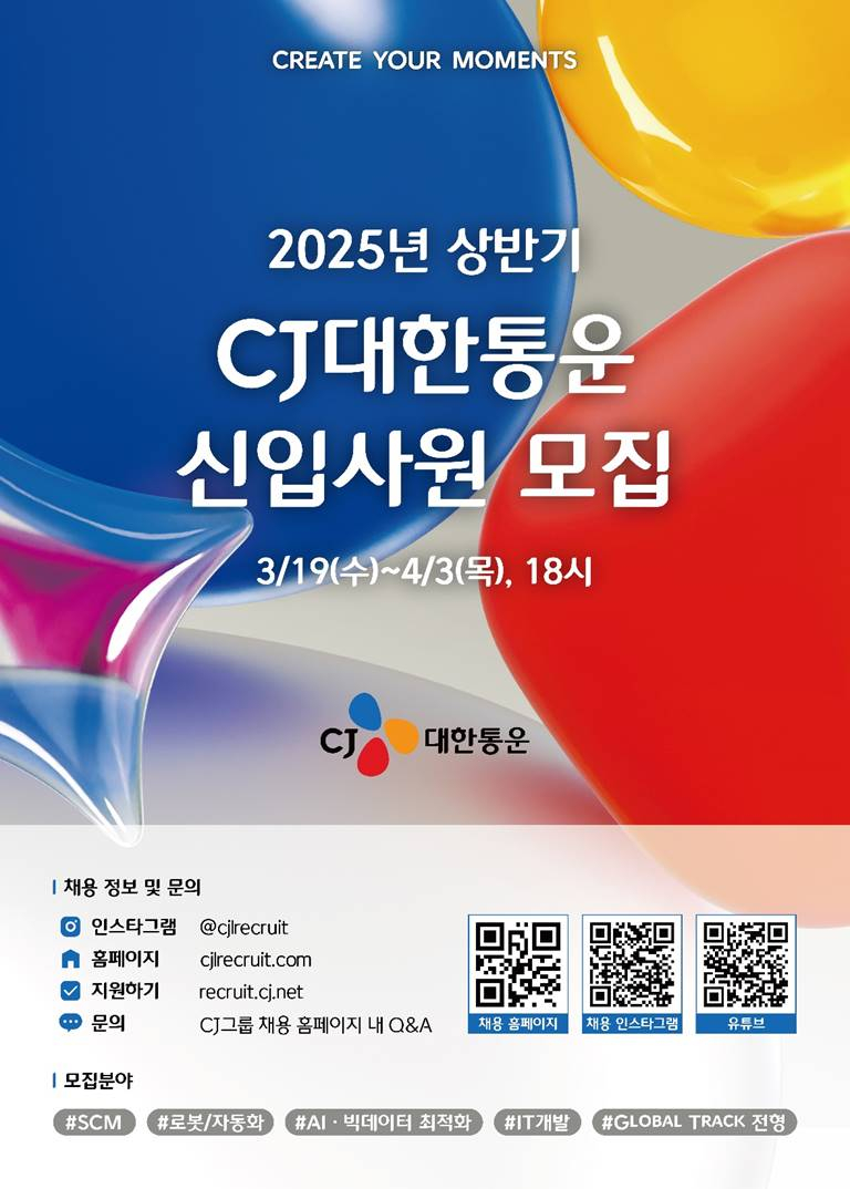 fnctId=bbs,fnctNo=2739 작성일 2025.03.20 수정일 2025.03.20 작성자 강아라 조회수 173 [학부] 2025 상반기 CJ대한통운 신입사원 모집 안내 첨부파일 첨부파일이(가) 없습니다.