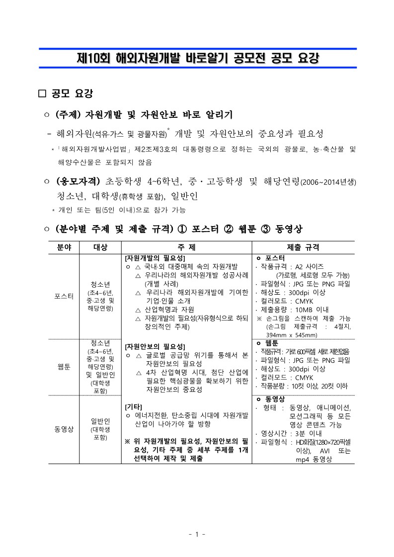 제10회 해외자원개발 바로알기 공모전 참가신청 및 안내