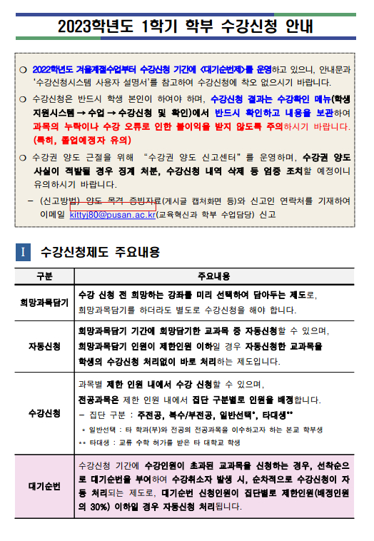 [학사] 2023.1학기 학부 수강신청&희망과목담기 안내/ 2023 Spring Undergraduates' Course Registration & Wish List