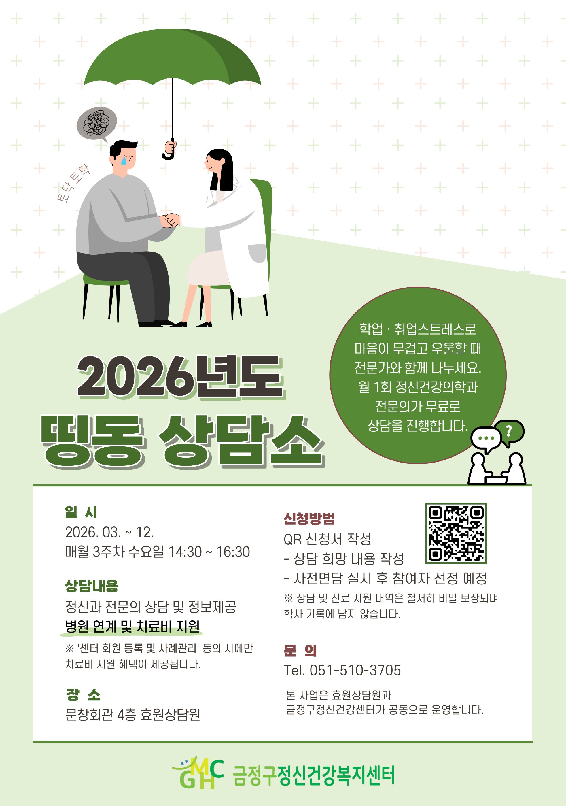 [효원상담원] 정신건강의학과 전문의와 함께하는 띵동상담소(상시 접수 중)