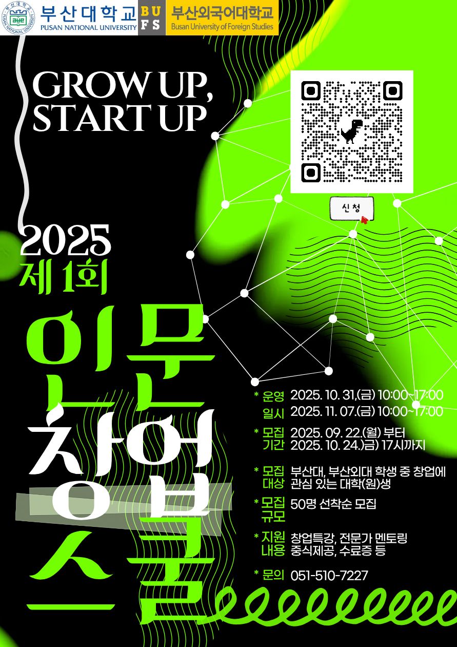 ? 모집대상 : 부산대, 부산외대 학생 중 창업에 관심 있는 대학(원)생 50명 선착순 모집