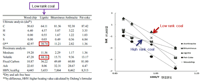 Source : Byungho Song et al., "A kinetic study of steam gasification of low rank coal, wood chip and petroleum coke", Korean Chem. Eng. Res.,Vol.48, No.1, February, 2010