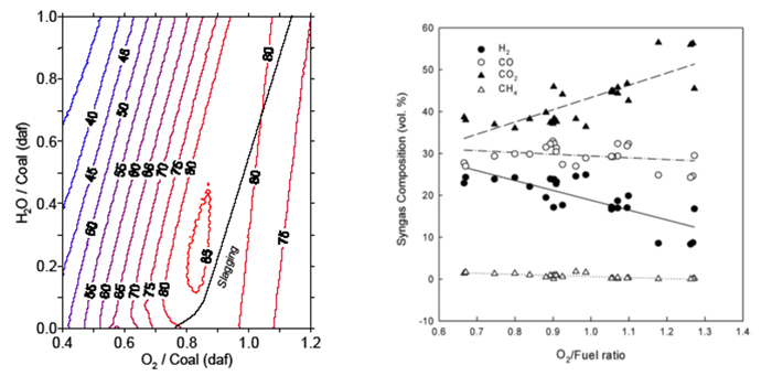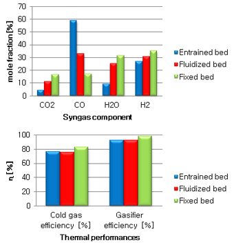 | Equilibrium model | Effect of different gasifiers (with coal A) |