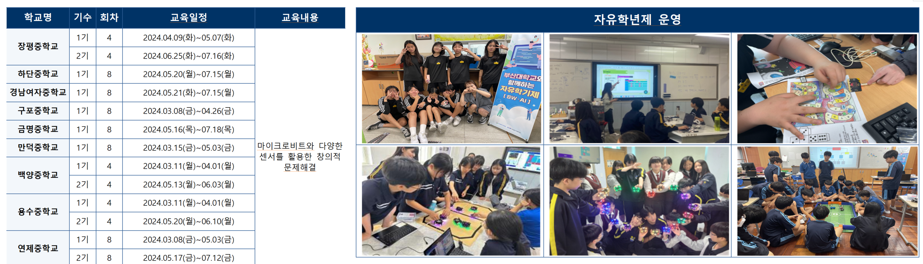 - (대학-교육청 협력을 통한 체계적인 SW·AI 교육 환경 구축) 부산광역시 교육청과 협력을 통해 대학의 인프라를 활용한 체계적이고 전문적인 SW·AI 교육 환경을 조성하여, 공교육과 연계된 맞춤형 프로그램을 운영